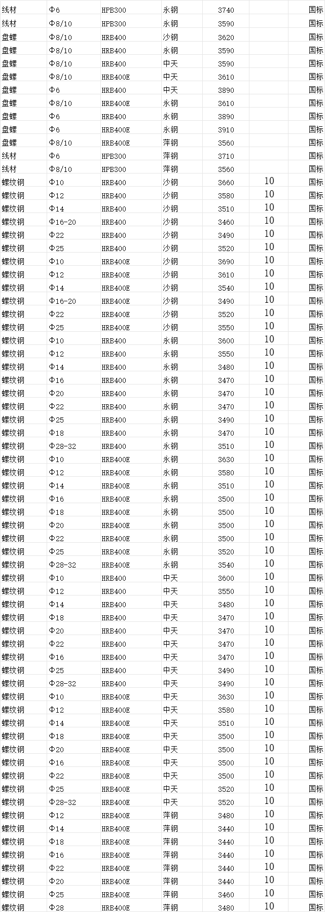 2025年10月10日舟山錦海倉鋼材建筑材料價格